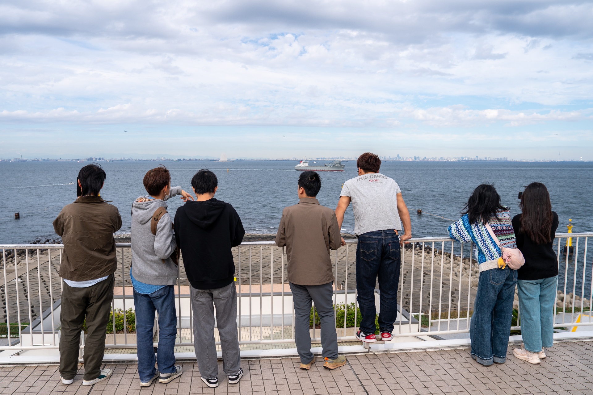 皆スマホを取り出して、東京湾を行き交う貨物船や、悠々と飛び交うカモメの姿をフィルム写真に収めていました。なかには「日本に来て初めて海を見た!」という学生も。