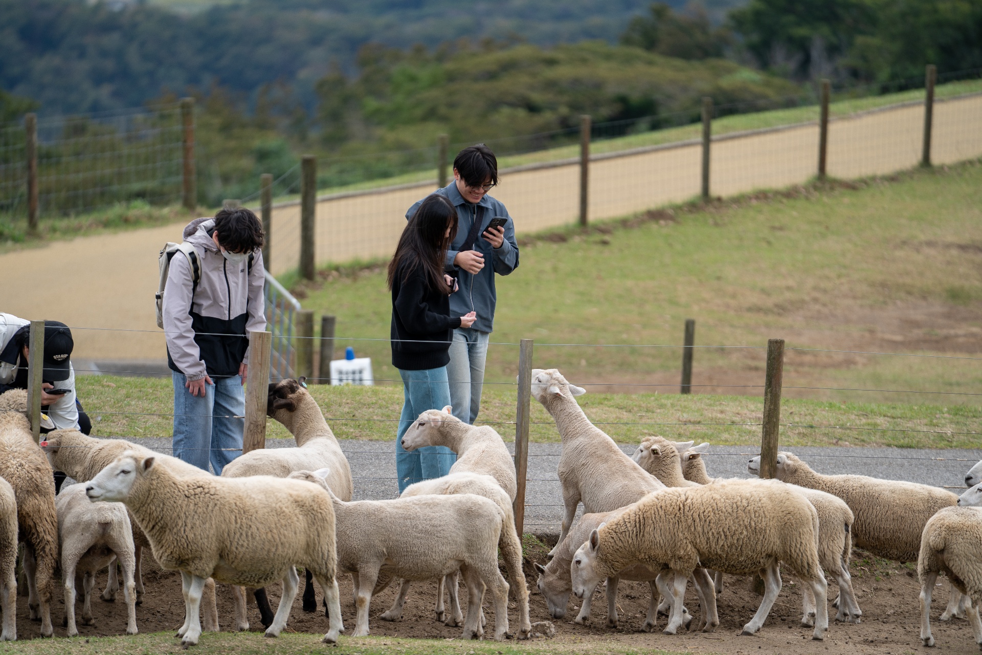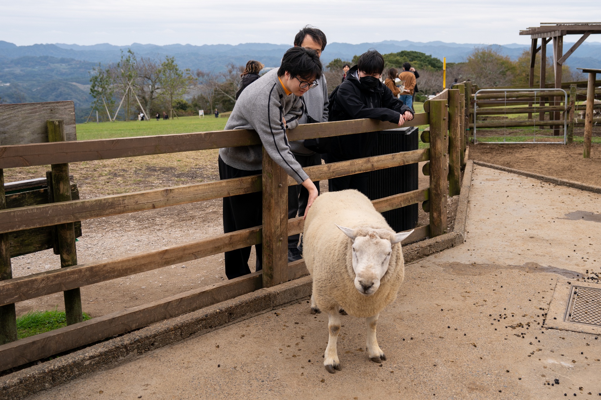 食事が終わるとあとは自由時間。「ひつじの大行進」「乗馬体験」「うさぎモルモット・タッチ」などの動物交流アトラクションでは、動物をなでたり、餌をやったり、羊が芸をする「シープショー」では大きな歓声を上げる様子も見られました。ほかにも観覧車やジェットコースターなどのアトラクションを楽しんだり、牛の乳しぼりを体験したり、お土産を買ったり、思い切り楽しい一日を過ごしました。
