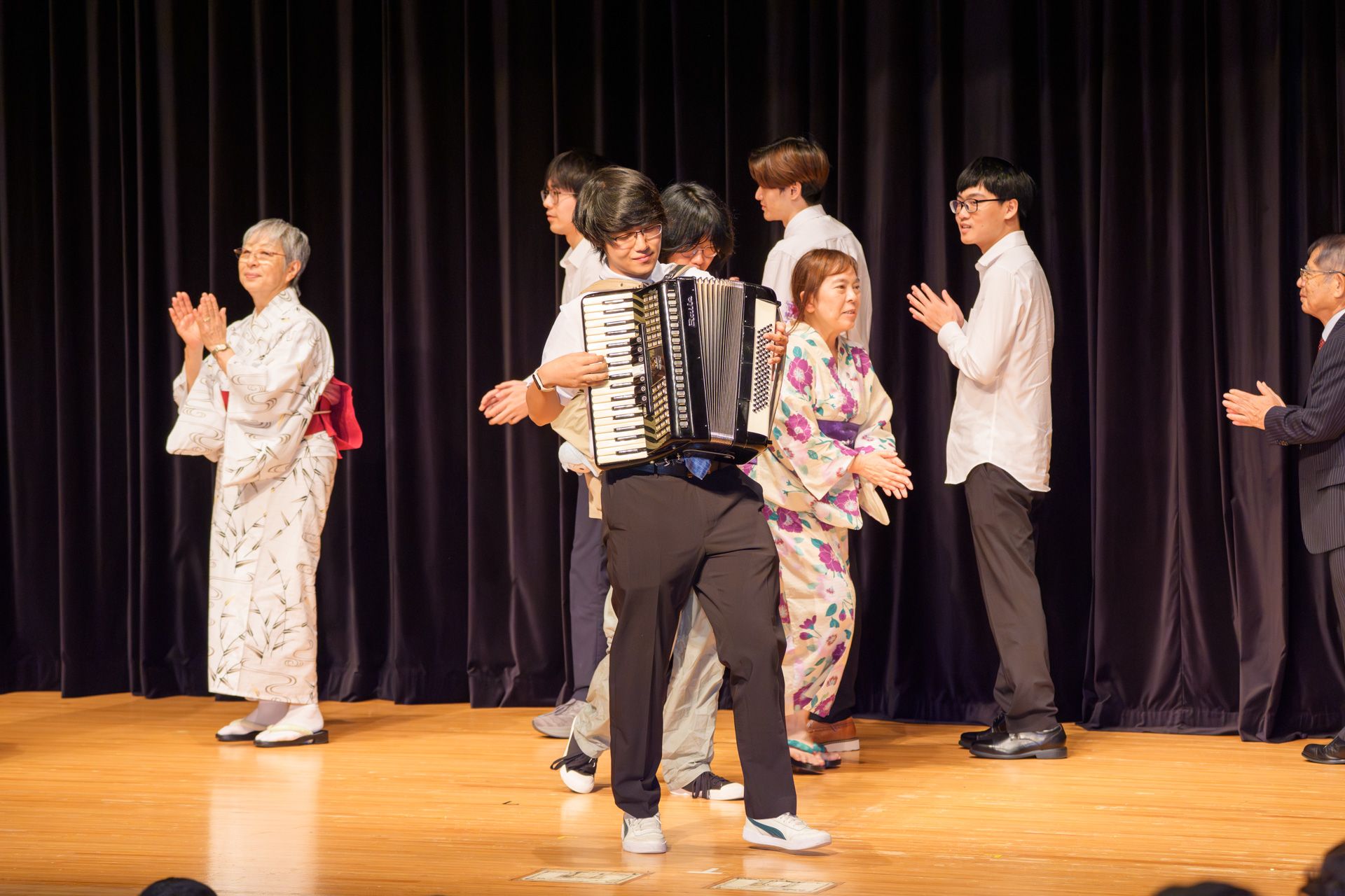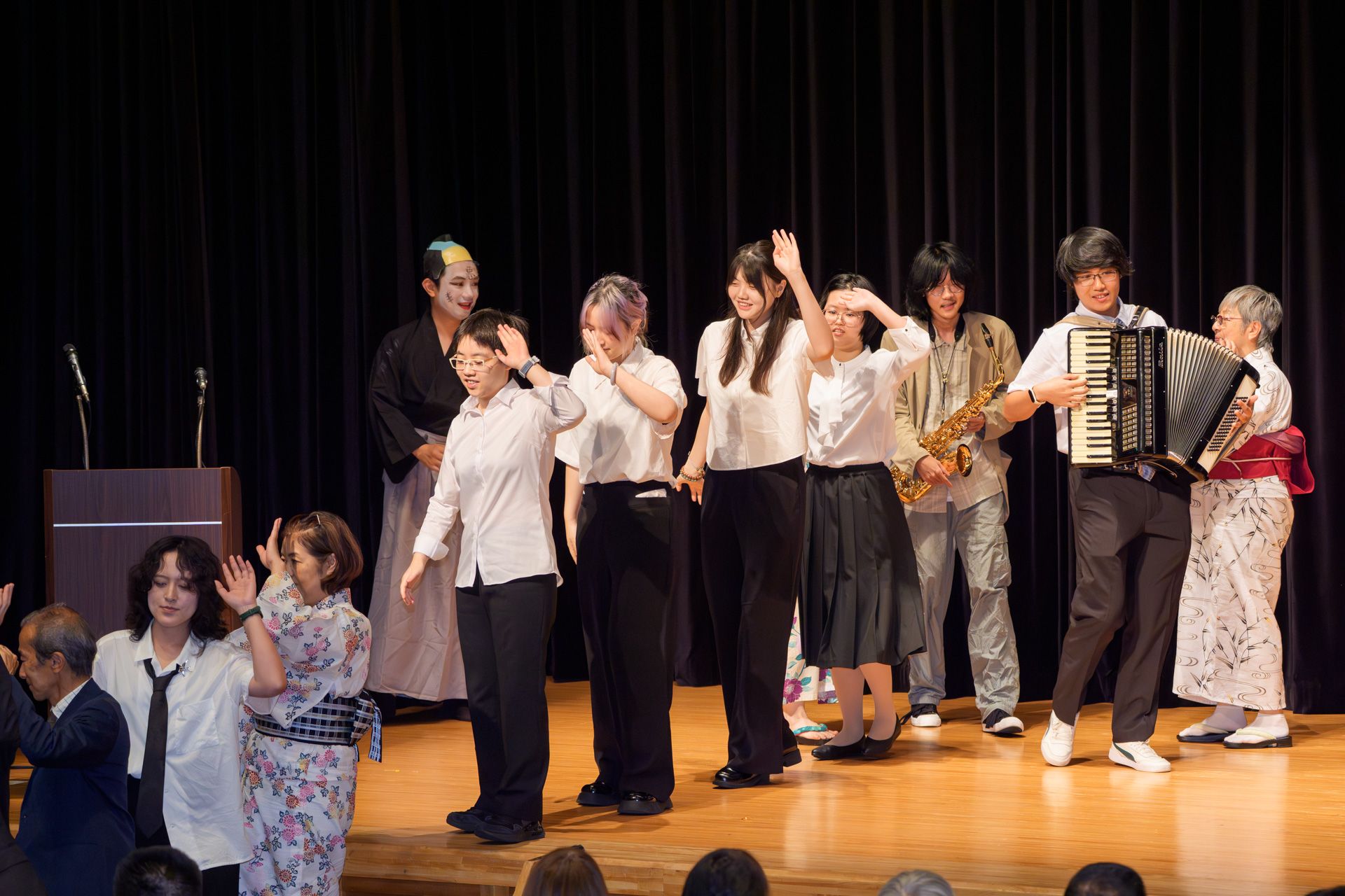 为了表达我们对大家的热烈欢迎,入学典礼在严肃认真的迎新说明会之外,教职员、在校生与新生共同参与,带来了有趣的余兴节目。比如手风琴、钢琴、萨克斯和歌唱的组合演出,欢乐的吉他弹唱,在校生与新生默契配合的合作舞蹈,还有独特的“剑战剧场”等,节目丰富多彩。正因如此,本次入学典礼热闹非凡。我们相信,参加典礼的新生及其家属也都非常满意。