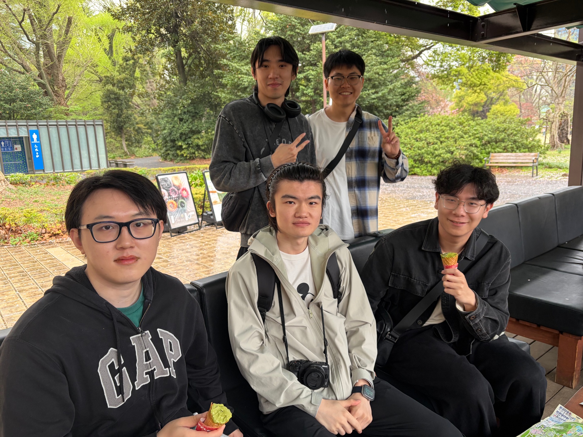 走了一段时间后,大家在园内各处的休息区休息,和朋友们一起品尝抹茶味冰淇淋和日式甜点,度过了轻松惬意的时光。