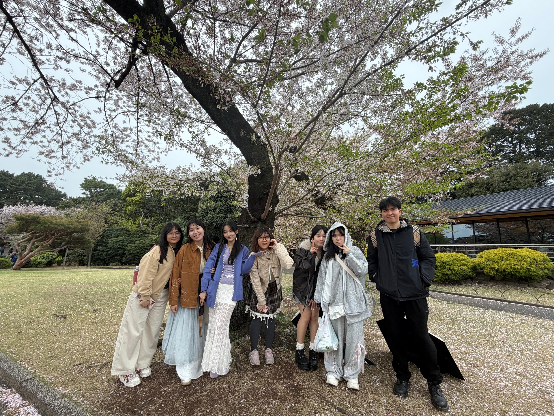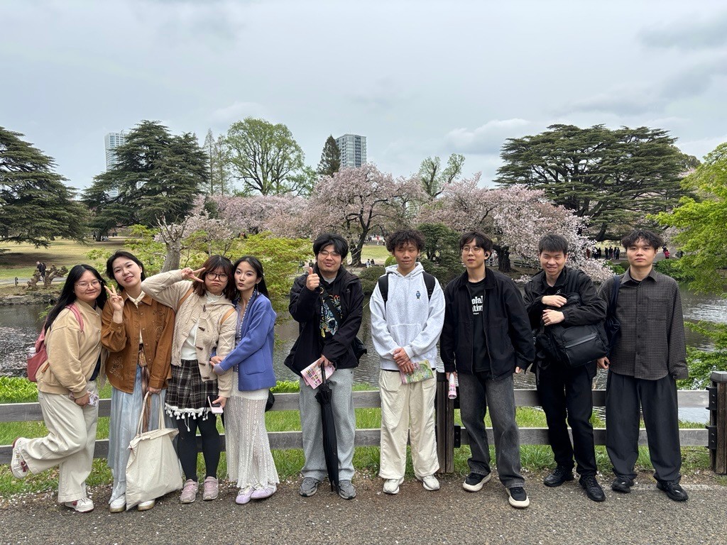 在4月7日东京都细雨绵绵的这一天,我们在著名的赏樱胜地—新宿御苑进行了一场观赏樱花的活动。这一天恰逢是八重樱进入了最佳观赏期,学生们对深浅不一的八重樱之美赞叹不已,并且以樱花为背景拍摄了许多照片。微风拂过时,染井吉野樱的花瓣纷纷飘落,景色格外动人,同学们兴奋地跑过去,沉浸在这花雨纷飞的世界之中并且相互拍照留念,都想要留住这最美的瞬间。